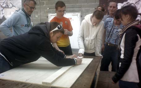 En juin 2014, un groupe de l’IME Vaurouzé est venu construire quatre cabanes dans le hall de la Fonderie ; trois furent dédiées à l’écoute d’archives sonores, une autre au cinéma. L’expérience s’est poursuivie cette année. À la Fonderie, Franck Boucher, éducateur, Olivier Nourisson, plasticien, Donatien Bertron, Christopher Broute, Kevin Pageaud, Chamil Machaev, Nadège Marais et Noémie Payen, de l’IME Vaurouzé, se sont donnés rendez-vous depuis le mois d’avril 2015 pour construire un télescope miroir 130-900. Fabriqué avec des matériaux de récupération (restes de décors de théâtre, de cinéma ou de sculptures d’art contemporain…), réalisé dans l’atelier de construction du théâtre, le télescope sera inauguré le 9 juin avec des astronomes amateurs du Mans et l’association SIDEAL.